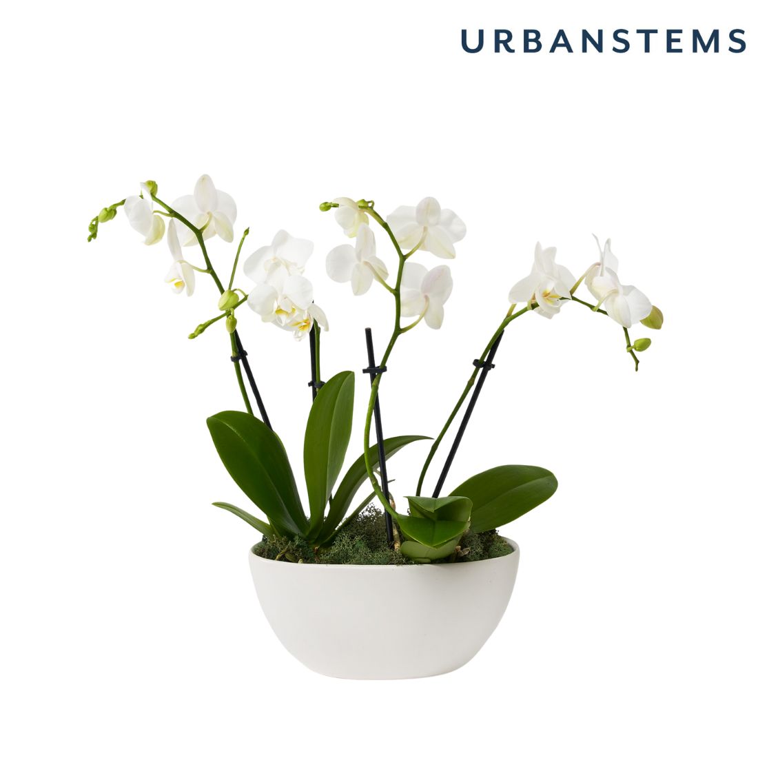 sku: STURB64Sometimes the most meaningful gestures are the simplest ones—The Neutral Orchids features multiple white orchids arranged in a clean white ceramic boat. Our designer created this serene arrangement for those quiet moments when you want to say "I'm here for you" without saying a word. Perfect for offering comfort during difficult times or celebrating someone who appreciates understated elegance. Beauty that speaks softly but says everything.