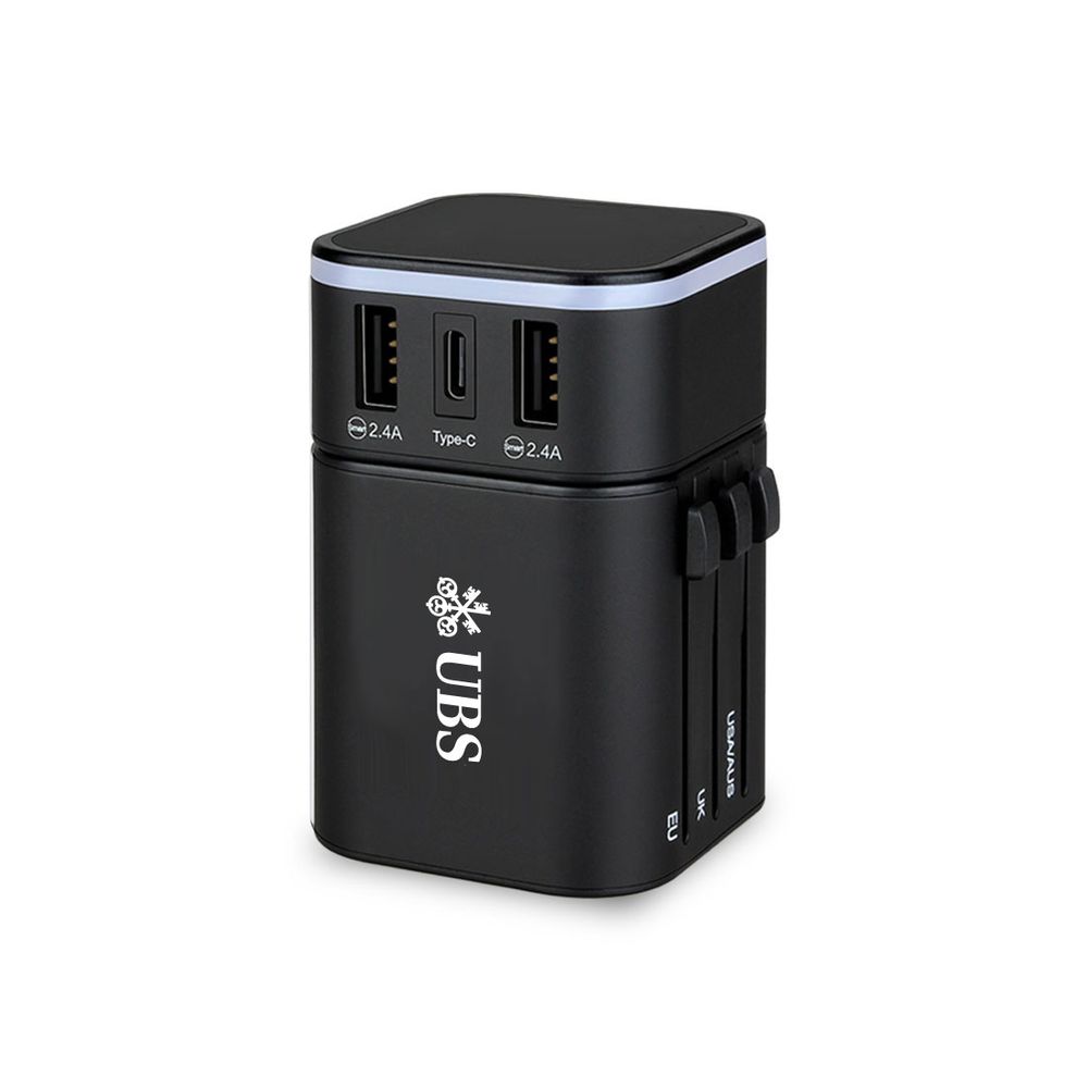 sku: UBS2516A must-have for any international traveler, this truly universal adapter works in over 150 countries. Every output you could need with blazing fast charging speed. The top portion of the adapter can separate into a USB charger with Type-A plug at the bottom. Your logo is printed on the adapter.