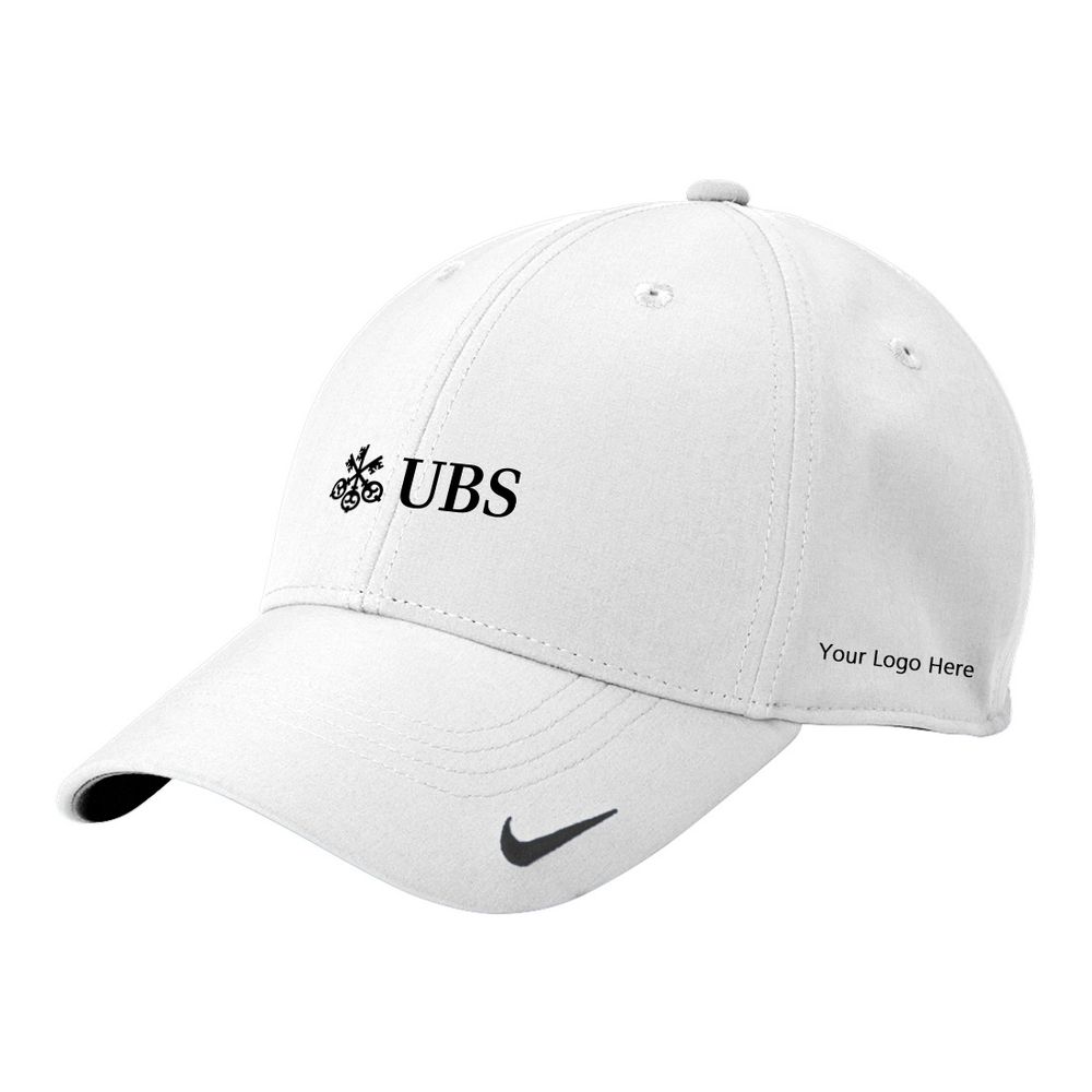 sku: UBS885295VAWith a smooth front panel and stretch for comfort, this moisture-wicking cap continues a legacy of performance. This popular cap has been modernized from its original 1991 design with lightly structured front panels and unstructured mid and back panels. Features a mid-profile and a hook and loop closure. The contrast Swoosh design trademark is embroidered on the bill. Made of 5.6-ounce, 90/10 polyester/spandex. Features the UBS logo embroidered on the front and Your Group Name on the side.
