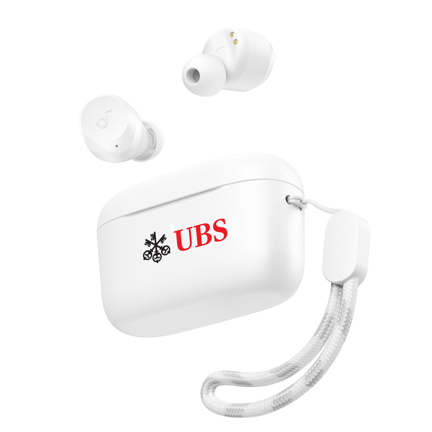 sku: UBS2538WHAI-Enhanced calls with 2 mics for better quality. 9-hour playtime, 28 hours with charging case. Tailor your experience by customizing your sound with the app. IPX5 Waterproof. Your logo printed on the case.