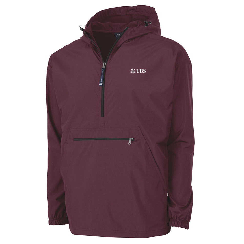 sku: UBS125MRLightweight, wind- and water-resistant with breathable comfort. Packs into its own front pouch pocket with zipper and self-fabric loop. Extended neck zipper for quick layering. Adjustable hood with shockcord drawstring. Underarm grommets for added airflow. Elasticized cuffs and adjustable shockcord hem. Features your logo embroidered on the chest.