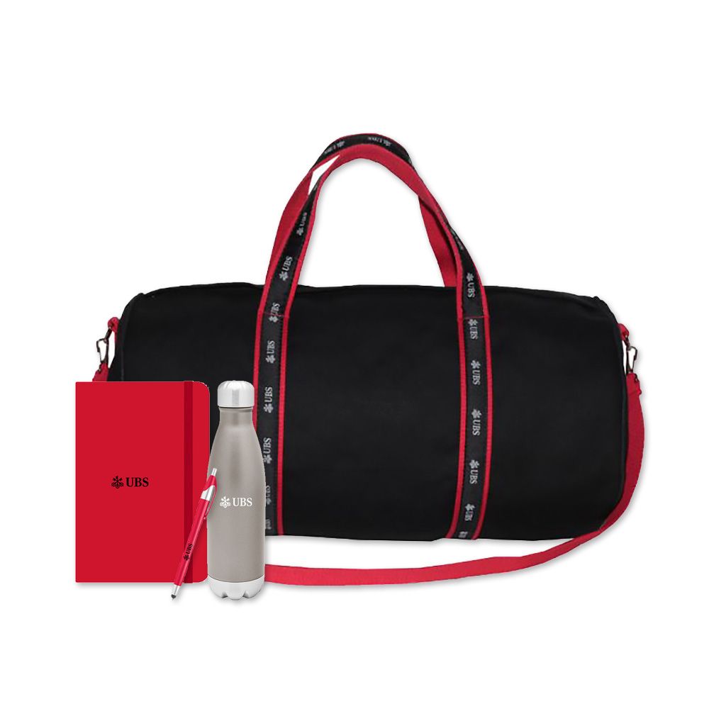sku: UBS99389KThe perfect kit for working from home. Includes Eco Journal with Stylus Pen (UBS2488RD), Thermal Water Bottle (UBS1002GRY). Comes packaged in a 21" Original Duffle (UBS100).